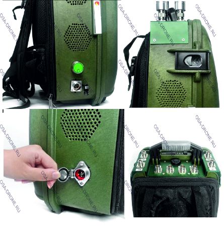 Устройство переносимого типа для подавления сигналов управления и навигации дронов и БПЛА. Применяется как с всенаправленной антенной, так и антенной направленного типа.